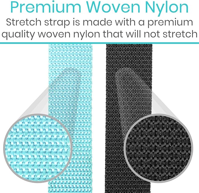 - DURABLE NON STRETCH STRAP: Stretch strap is made with a premium quality woven nylon that will not stretch. The sturdy nylon strap is durably constructed to withstand extensive use. Measuring 75” in length, the stretch strap is also comfortably sized to work for any individual.