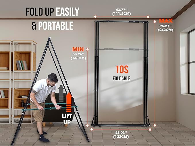 - Space-Saving & Portable: Quickly fold the KT pullup stand in under 10 seconds to free up space for additional activities. While itβs not designed for easy travel without disassembly, its portability is ideal for use within local environments like homes, schools, and offices. Position it wherever suits you best to maximize convenience, saving time and facilitating quick workouts