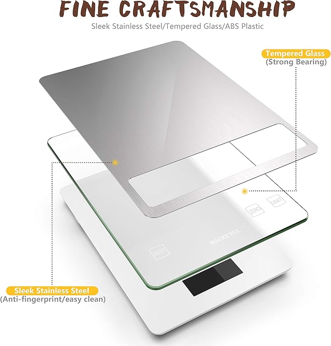 - Practical Design: Food scale is designed with tempered glass for strong bearing; sleek stainless steel surface for anti-fingerprint and easy clean for convenient storage;It can resist staining and food carry over and helps to weigh things accurately
