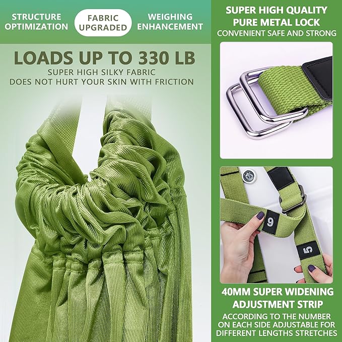 - Material & Size: This backbend stretcher is made of premium nylon fabric which is soft to touch and sturdy, the material is skin-friendly and hypoallergenic, and it's easy to clean; The adjustable strap length is 63", the size of the fabric is 67" x 60", gives you plenty room to play.