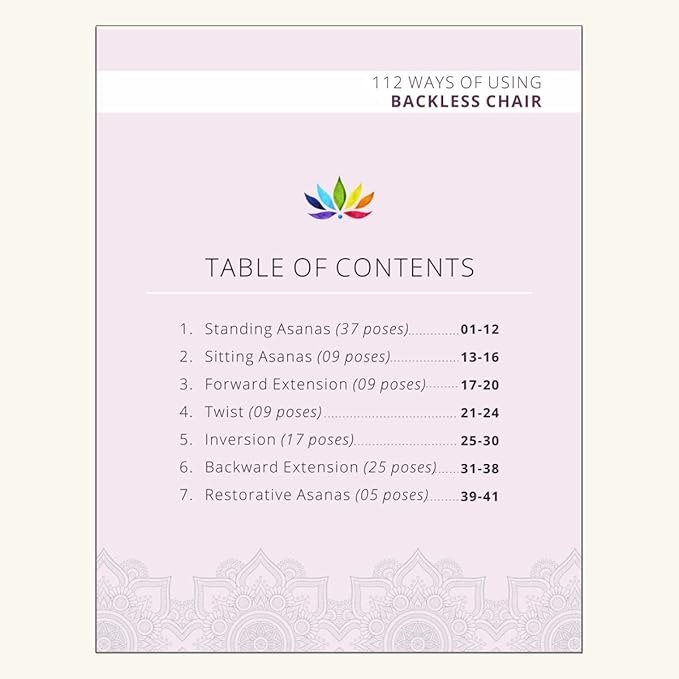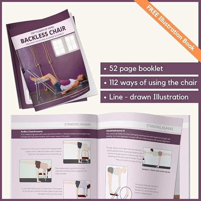 - Yoga Chair with Yoga Book: Our yoga chairs for adults comes with a special yoga book that features 112 pictures showing various ways to use the chair. This guide includes yoga poses using the yoga inversion chair while sitting, standing, bending forward or backward, and even relaxing poses. The book is a valuable resource for improving your yoga practice and exploring new poses, making it perfect for beginners and advanced practitioners alike.