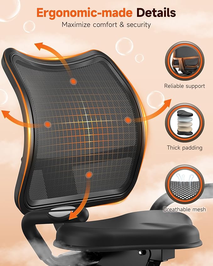 - Ergonomic Seat & Backrest: Bid farewell to hip discomfort. Embrace comfort with ergonomic high-density soft sponge cushion and breathable mesh backrest; 8 seat position is easy to adjust, providing ample leg room for user height up to 6'3"