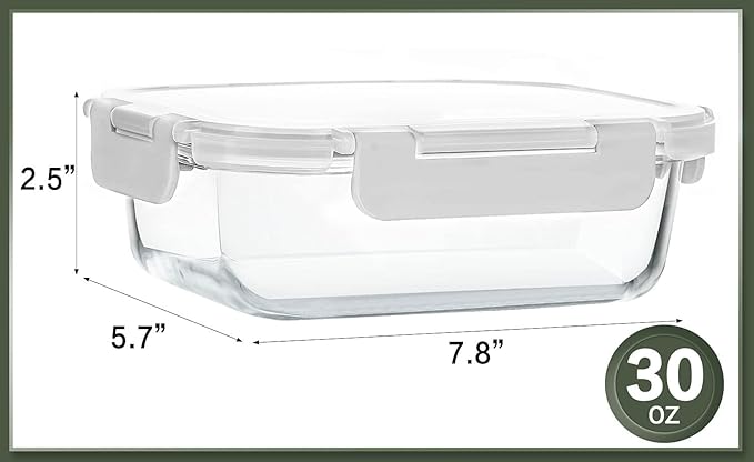 - GLASS MEAL PREP CONTAINERS 10 PACKS: Buying our versatile glass containers sets (10 lids & 10 containers) size: 30 Oz, you'll have a set of 10 food storage containers. Ideal for both meal prepping and storing leftovers, snacks, using for gym, office lunches, travel, picnics and more.