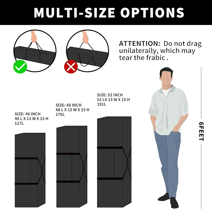 - MULTIOURPOSE:Travel Duffle Bag can be used for travel, snorkeling, baseball, self-driving trip,camping,moving and other outdoor activities. Besides, it can be also used for home storage such as pillows, quilt, clothes, disassembled Christmas tree etc.
