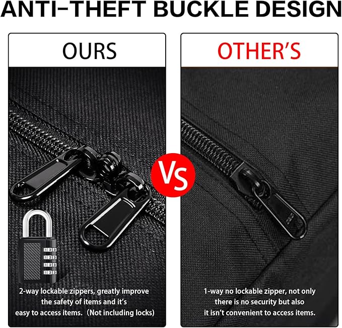 - DOUBLE ZIPPER: The main compartment of the travel bag is equipped with a double-ended zipper for easy use. High-quality zippers stay smooth even with long-term use. The two zippers can be locked with a lock to ensure the safety of items.
