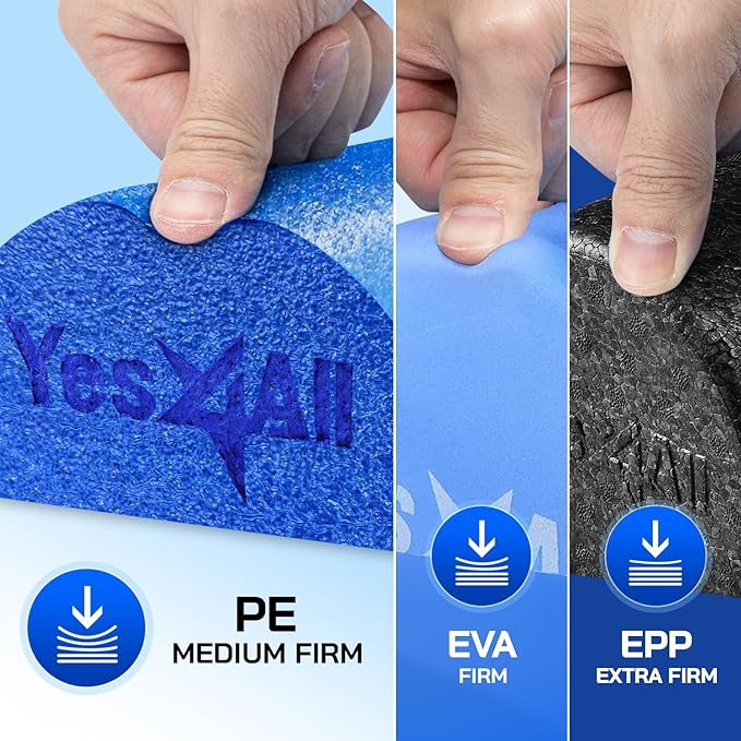 Yes4All Medium Firm Half Foam Rollers for Post-Workout Relaxation, 12/18/24/36 inch PE Foam Roll for Back Massage & Yoga Exercise