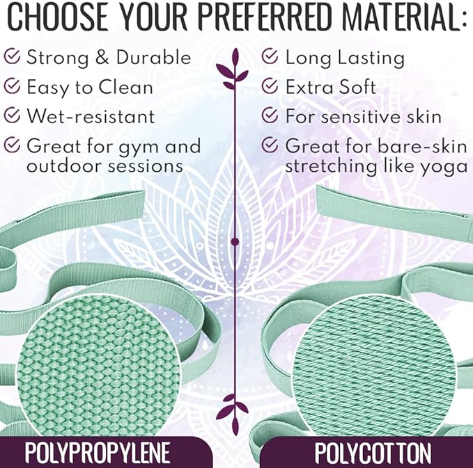 - MATERIAL DETAILS: Our straps are made from durable Polypropylene and come in 1” width (75-inch length) and 1.5” width (79-inch length) options. All our straps have 10 individual loops.