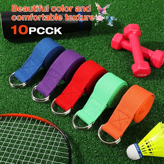 Jerify 10 Pcs Yoga Strap for Stretching Bulk 6ft Exercise Stretch Band with Metal D Ring Adjustable Pilates Non Elastic Yoga Stretch Belt for Women Men Physical Fitness Gym Workout Dance