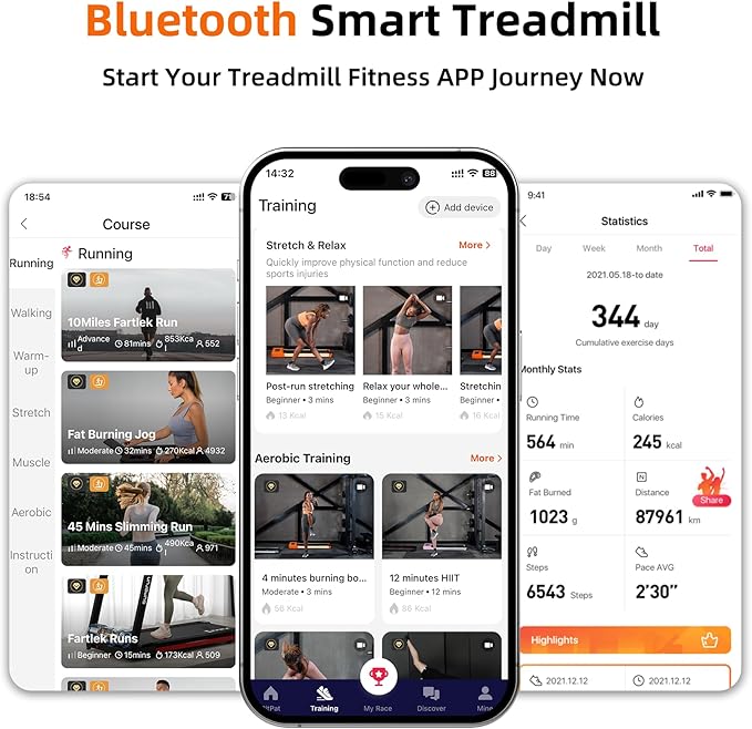 - 【FREE Pitpat APP】 Our portable treadmills for home App offers various sports competition、FREE courses and programmed exercises for you, You can communicate with walking enthusiasts at home, making walking no longer boring and experiencing the pleasure of competing with others
