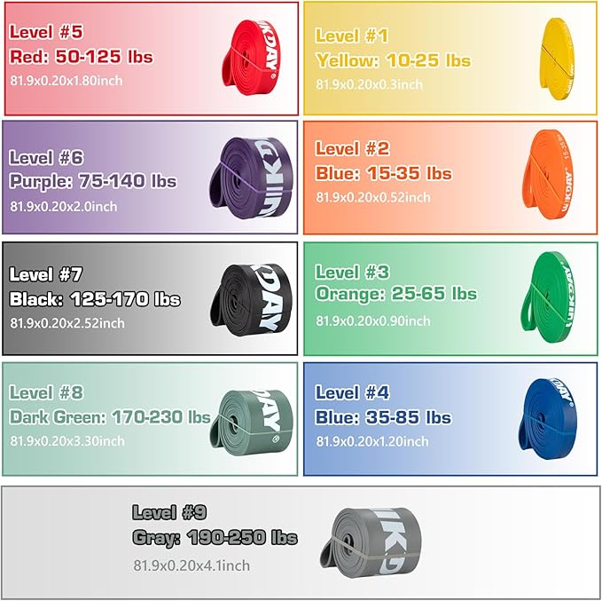 - [Multifunctional Exercise Bands]--Our long resistance bands, ideal for pull ups, are perfect for mastering pull-ups, ring dips, and muscle ups. These pull-up bands assistance bands are versatile for men and women, facilitating body resistance training and physical therapy to strengthen ligaments or muscle tears. They're great for exercising arms, back, legs, and buttocks, serving as stretch bands, gym bands.
