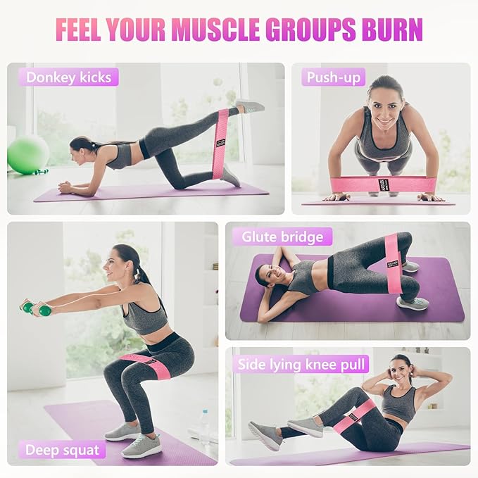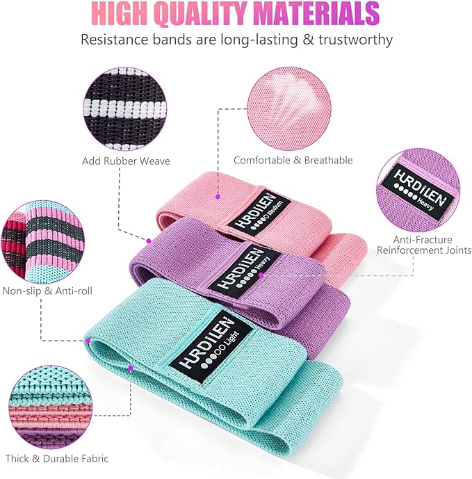 - Three Resistance Levels - The exercise bands resistance offer three resistance levels: light (green, 15-30 lbs.), medium (pink, 30-50 lbs.) and heavy (purple, 50-70 lbs.), all the same size (3.15"x13.8"), ensuring that all workout goals and desired intensity levels are met, catering to the workout needs of beginners and advanced exercisers alike. The workout bands make it easy to create a personalized workout program to help you progress on your fitness journey.