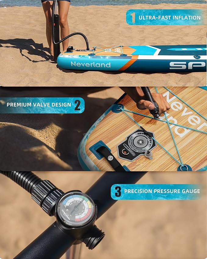 - 【Easy inflation & attractive design】SPORIT inflatable paddle board features convenient inflation and deflation capabilities. Equipped with a dual-action pump and high-end valve, it allows for effortless inflation and deflation. You can have it ready in just a few minutes, making it convenient and quick. Additionally, this paddle board has a stylish and unique design that adds charm and captures attention during your water adventures.