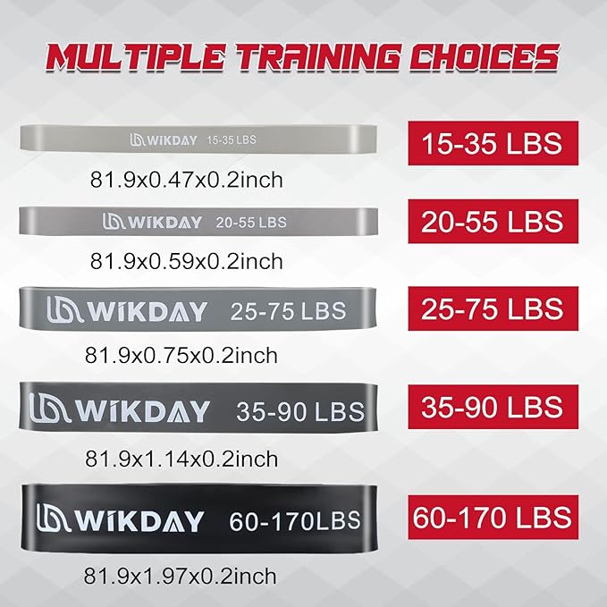 - ā [Wide Applications]--This professional exercise bands comes with 5 different levels of resistance with a new door anchor. #1Gray(15-35 lbs), #2Gray(20-55 lbs), #3Gray(25-75 lbs), #4Gray(35-90 lbs), Black(60-170 lbs). They are very suitable for beginners, fitness enthusiasts, athletes and other people.