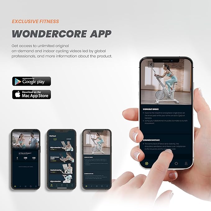 - đȘăWONDER CORE APPăPair the Wondercise Bike with the Wondercise app for exclusive features and content. Including synchronizing the data on the BIKE to the mobile phone APP, reading the detailed product manual, watching the installation video, product usage tips and methods, and video courses from professional coaches, etc.