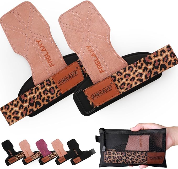 Frelaxy Lifting Wrist Straps Women and Men, Weight Lifting Grips with Cushion Wrist Loop, Double Layer Leather and Storage Pouch, Gym Workout Straps for Deadlift and Powerlifting