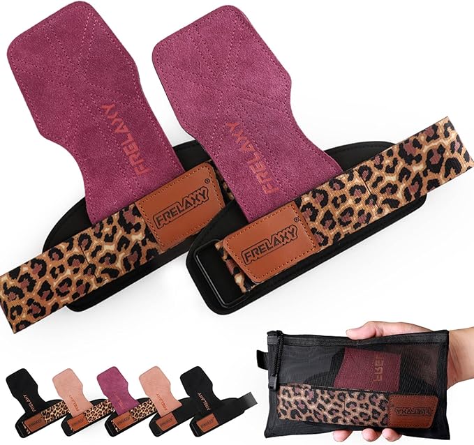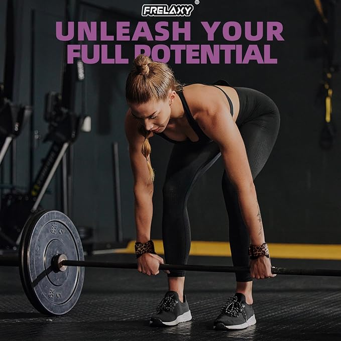 Frelaxy Lifting Wrist Straps Women and Men, Weight Lifting Grips with Cushion Wrist Loop, Double Layer Leather and Storage Pouch, Gym Workout Straps for Deadlift and Powerlifting