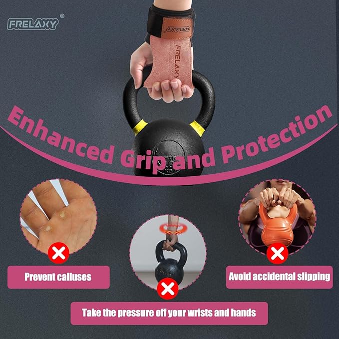 - Enhanced Grip and Protection: Made of high-quality double layers of soft cowhide, our wrist straps provide an improved grip while preventing calluses and accidental slipping. The widened and thickened neoprene pad takes the pressure off your wrists and hands, offering the stability and confidence needed to maximize your performance.