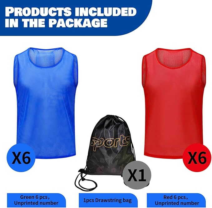 • 【Package and Services】--- Each of package comes with a beautiful drawstring bag for easy storage and carrying with you sports pinnies and Provide high-quality services.
