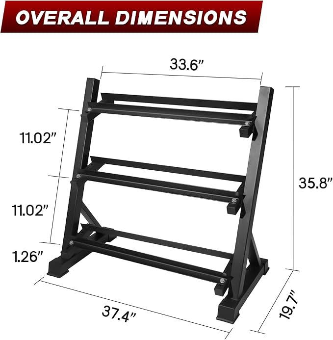 - 【Package Included】:Contains 2X5LB、2X10LB、2X15LB、2X20LB、2X25LB、2X30LB、2x35LB、2X40LB、2X45LB dumbbells with 1 X 3 Tier Rack. A sturdy set of dumbbells can be used for various barbell exercises, and you can choose different combos to vary the intensity of your workouts.