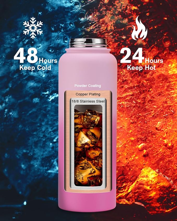 - Keep Cold for 48H & Hot for 24H:Topre 40 oz Water Bottle Insulated features advanced triple-wall vacuum insulation with copper plating, the water flask preserve the freshness and temperature of your drinks throughout the day.
