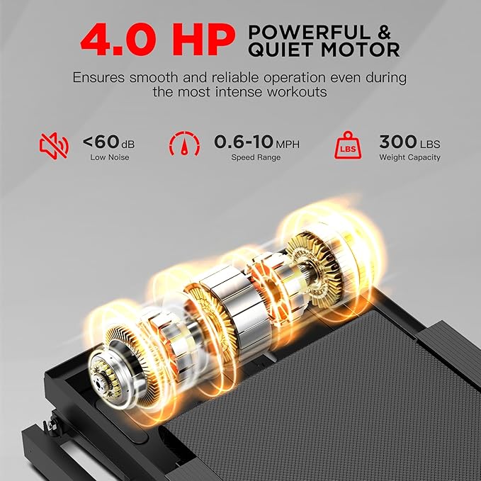 - Wider Speed Range: Equipped with a powerful 4HP motor, the folding treadmill supports a 0.6-10 MPH speed range. Whether you prefer walking, jogging, or sprinting, effortlessly switch between speeds to tailor your workout intensity to your fitness goals.