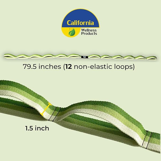 California Yoga Strap | Yoga Belt with Loops | 12 Multi Loop & Non-Elastic | Stretching Strap | Gym Workout & Exercise Bands | Physical Therapy | Improves Sitting Posture for Women & Men