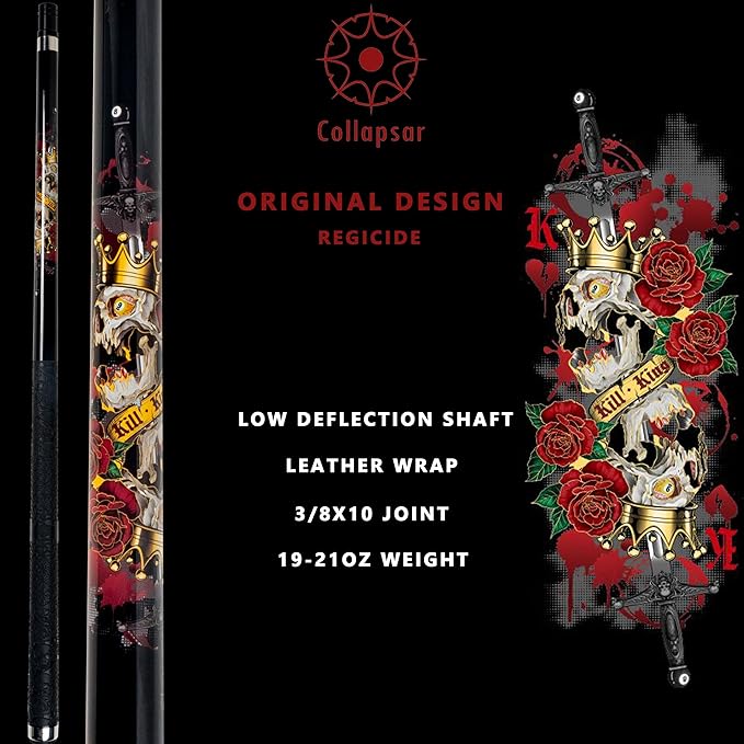 - COLLAPSAR 58" Original Skull Series Pool Cue Stick Come with a 1X1 Cue Case and joint protectors,Available in 19 - 21 ounce .