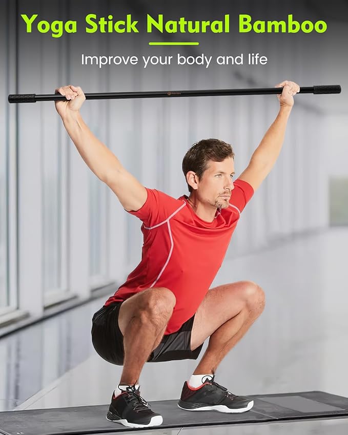 - Stick Length: The yoga bar measures 58.05 inches (148 cm) long, making it suitable for most men and women to practice yoga. The exercise dowel is made of natural bamboo and wrapped in rubber at both ends