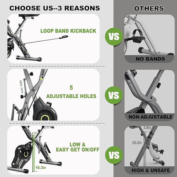 - 【GOIMU 5-in-1 Folding Exercise Bike】Versatile Home Fitness Solution for Cardio & Strength Training. Transform your home into a personal gym with the "GOIMU 5-in-1 Folding Exercise Bike". Designed for versatility, this exercise bike offers "5 unique workout modes" to target your entire body, helping you burn calories, build strength, and improve cardiovascular health. Whether you prefer to tool along at a moderate pace a few times a week or tackle intense studio-style workouts daily, the GOIMU exercise bike will help you succeed.