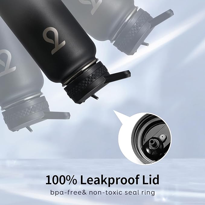 - Leakproof Triple Lids: Each lid comes with a rubber seal ring to ensure 100% leakproof. Sip through the flip-up straw lid, drink like a fish through the spout lid, or refill ice cubes through the wide mouth, you are in good hands with Trebo 32 oz water bottle.