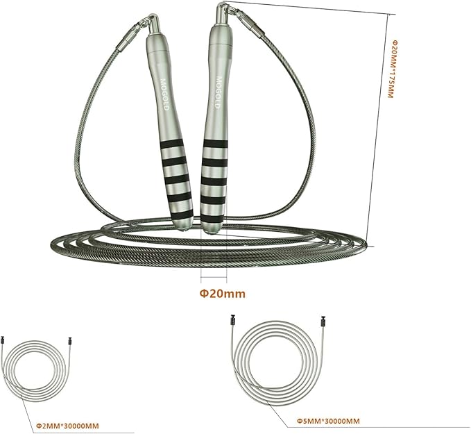 - 🌟 【SMOOTHER & FASTER】: MOGOLD Rope Skipping has built-in with high-quality Dual-ball bearings to provide you with comfortable jump exercises. It supports fast jumps while protecting you from any potential tangles, satisfying your needs for safety and convenience at the same time