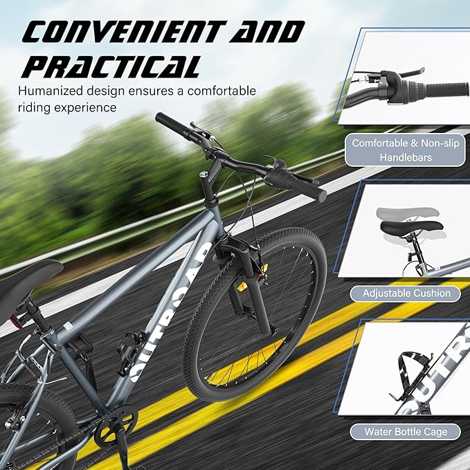 - 【Excellent adaptability】Mountain bikes are designed to handle various complex terrains, with excellent shock absorption and grip provided by the front suspension and sturdy anti-skid tires. Can easily drive smoothly on rugged mountain roads.