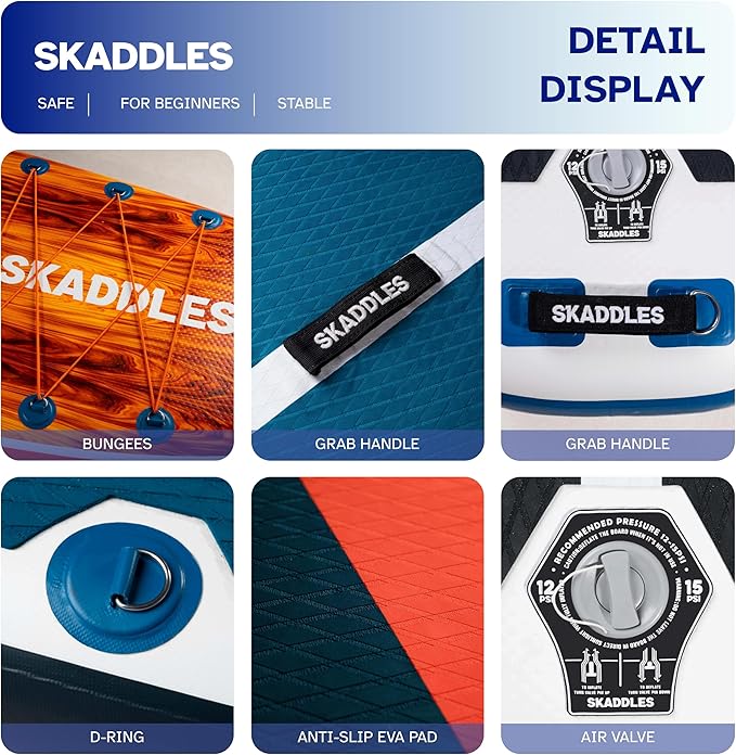 - 【High-Quality Inflatable Paddle Board with Trusted Support】 Crafted from high quality PVC with anti-slip EVA deck pad, SKADDLES paddle board offers excellent durability and comfort. We stand by our quality — enjoy a 30-day free return and extended support for added peace of mind.