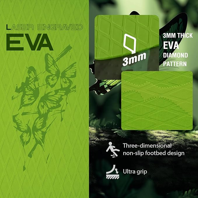 - 【Laser engraved EVA】 Surface laser engraved 3mm thick EVA diamond pattern, high coefficient of friction (≥0.6), wet still maintain a strong grip, with three-dimensional non-slip foot pad design, to avoid slipping and falling, the safety coefficient of pull full.