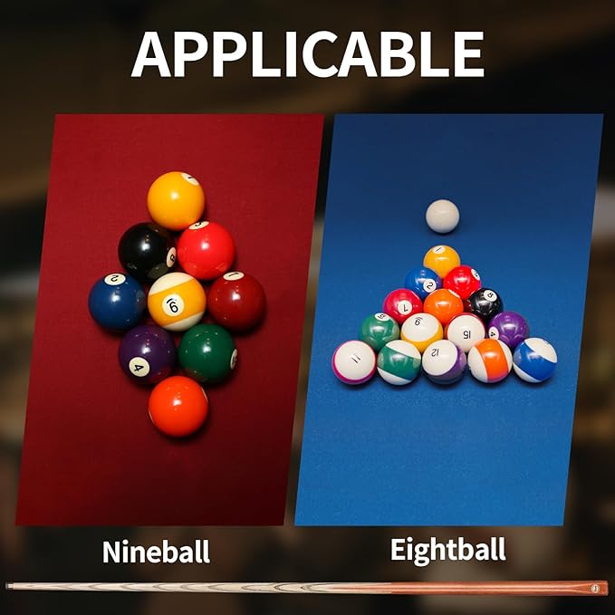 - Precise Power Transmission: The dense and straight pool cue stick enables efficient transfer of power from your stroke to the cue ball. Use the pool cue to get a direct and accurate hit, maximizing the effectiveness of your shots