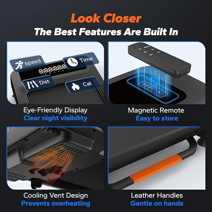 - 【3.5 HP Brushless Beast Motor】 25 dB Silent | 10-Hour Nonstop – Commercial-grade brushless motor powers this treadmill for home up to 4.0 mph sprint speeds with ultra-low noise (25 dB) and zero overheating. Adjust speed/incline via handheld remote – perfect for marathon training, explosive HIIT, or daily home workouts.