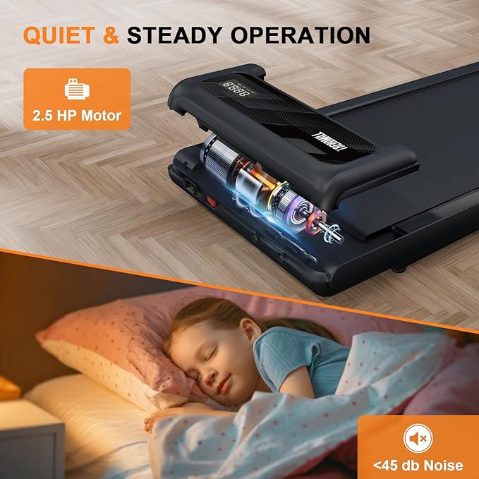 - Powerful Motor: This treadmill features a robust 2.5HP motor that supports users up to 270 lbs, delivering reliable performance for both walking and running workouts. Experience the strength you need to elevate your fitness routine.
