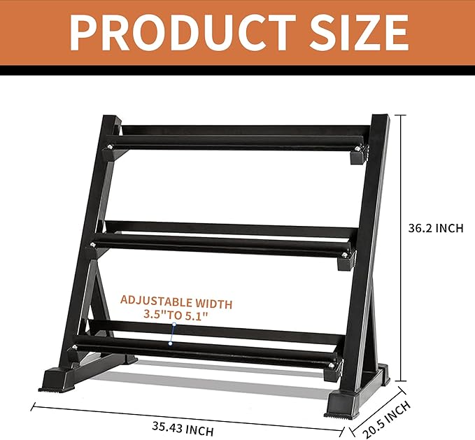 - Convenient and Spacious Dumbbells Rack: The three-layer 5/35 dumbbell rack design, part of our home dumbbell rack collection, features hexagon-shaped ends that keep the gyms hex weight set (from our dumbbell hex set) from rolling away and makes them easier to store. This 5-35 barbell dumbbell rack-heavy duty adjustable 3 tier dumbbell storage rack has an angled design and anti-slip surface, keeping your rubber hex dumbbells set spacious and convenient ??ensuring they won?™t be crowded during use and are easy to pick up.??/li>