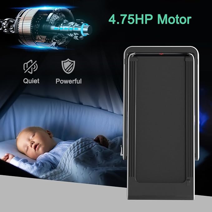 - šš¼ššÆš¹š² š¦šµš¼š°šø ššÆšš¼šæš½šš¶š¼š» š¦šššš²šŗ: Equipped with damping and silicone diamond systems, this under desk treadmill with 5-layer shockproof and anti-slip running belt offers better protection for knees and joints. In Addition, the 4.75hp powerful motor ensures a quiet and smooth running. Please do not use the treadmill on carpet to avoid overheating.