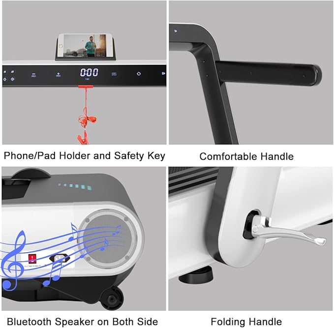 - š š¼šæš² šš»šš²šæšš®š¶š»šŗš²š»š: Coming with device holder and built-in speakers, this folding treadmill allows you to have more fund while exercise. Besides, you could also have professional courses and share your exercise data to community via Gymax APP.