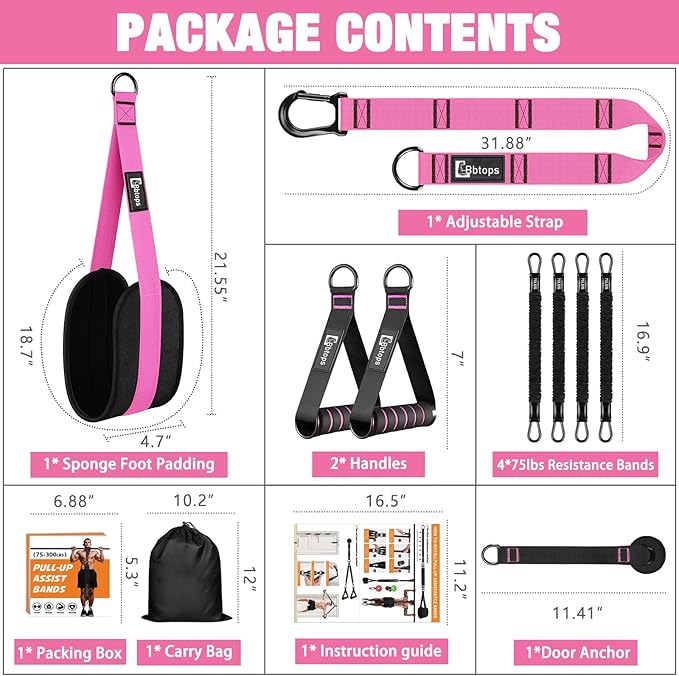 - 【Versatile assisted pull up bands for Fitness 】- It comes with adjustable height straps,4 high quality resistance bands,foot pad sling hanging straps,handle and door anchor which help you achieve various exercise movement as you like.the pouch bag make it easy to carry with after fitness workout,Carrying it conveniently to your home,office,gym or some outdoor occasion