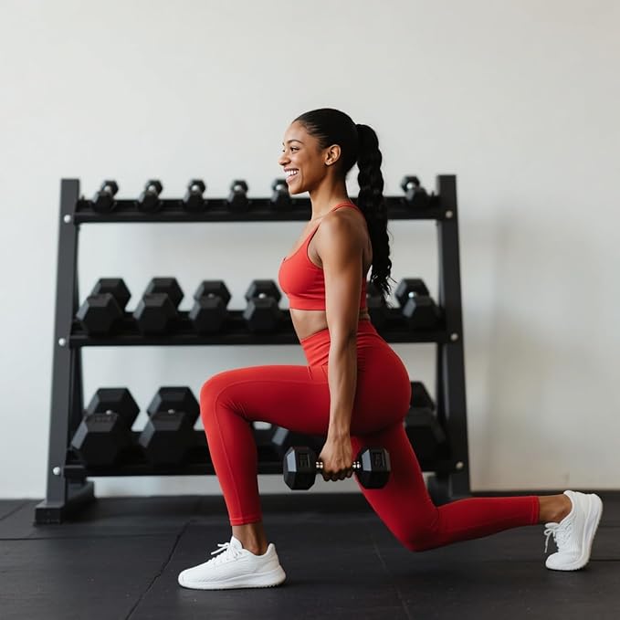 - 【Shape and Design of Rubber Hex Dumbbell Set 】 Hexagonal dumbbells are wrapped in rubber to reduce damage to the floor when landing, and the hexagonal shape prevents them from falling and rolling away and causing other injuries