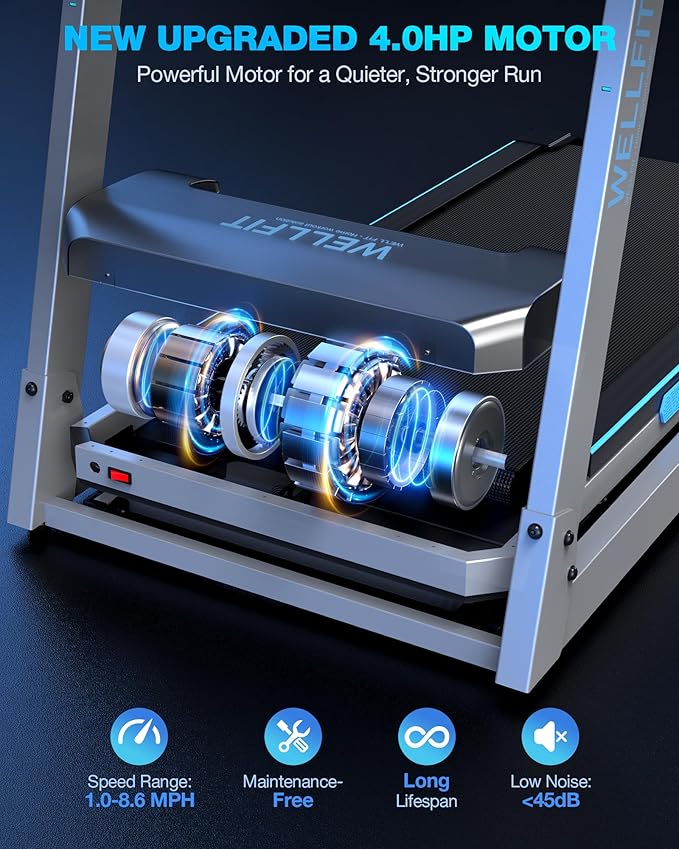 - 【Bluetooth Connectivity + App Sync – Smarter Workouts】Stay Connected While You Train. With built-in Bluetooth, pair your headphones for immersive music or connect to fitness apps like WELLFIT, KINOMAP, and Apple Health. Track progress, simulate outdoor routes, and stay motivated without distractions. This walking pad treadmill makes every workout more enjoyable and interactive.