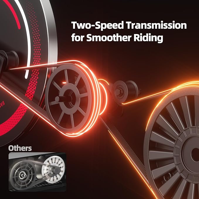 - 【Smooth & Realistic Cycling Feel – Outdoor Ride Indoors】Powered by an advanced dual-stage transmission system and alloy flywheel, the YESOUL indoor cycling bike delivers a natural, road-like pedaling experience. Every stroke feels stable and fluid, replicating climbs, sprints, and endurance rides outdoors—helping you burn calories, improve endurance, and strengthen muscles with low-impact efficiency